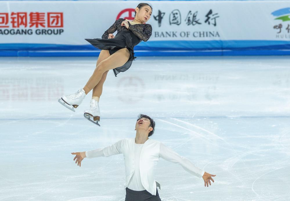 2月25日,北京队组合彭程(上)/王磊在双人滑自由滑比赛中。新华社记者 黄伟 摄