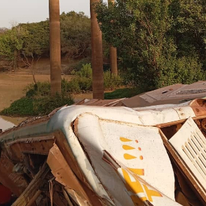 这是2月27日在马里锡卡索大区拍摄的客车坠桥事故现场。新华社发