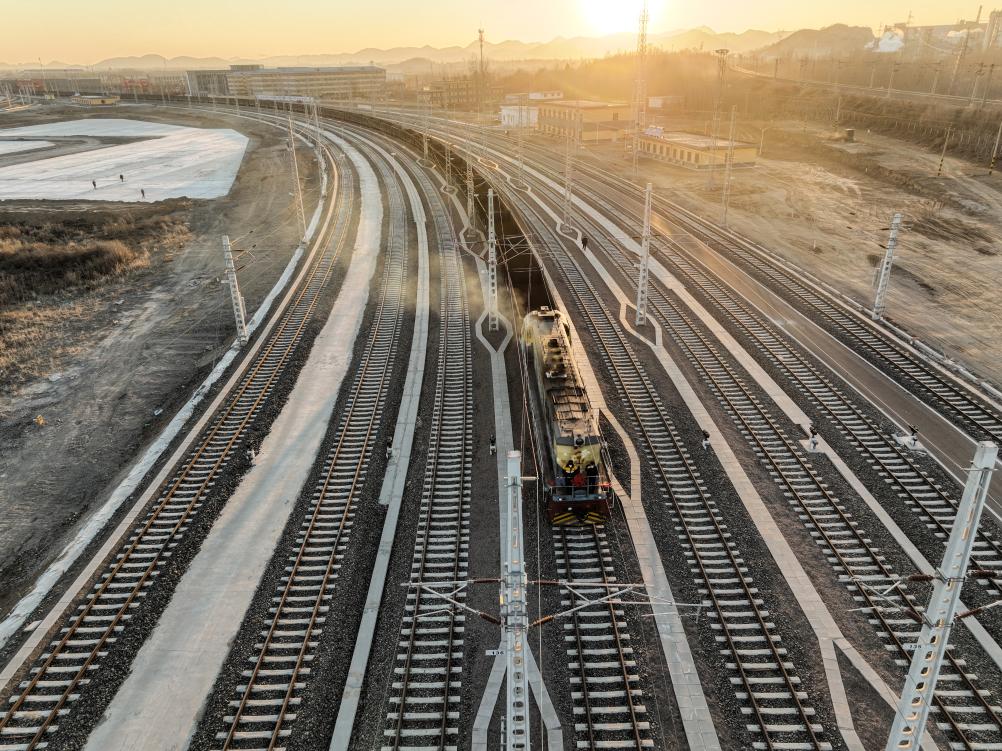 2月4日,一列火车缓缓驶入河北鑫达集团天道仓储物流港。(受访单位供图)