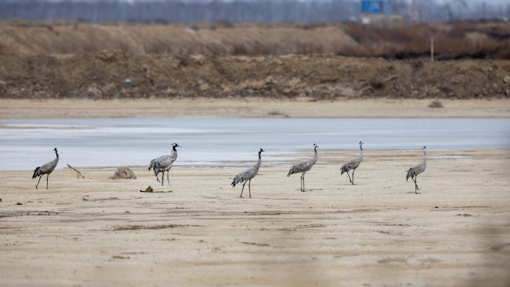 2月4日,在河北省黄金海岸保护区拍摄的国家二级保护动物灰鹤。(受访单位供图)