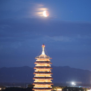 北京星空摄影爱好者周博2021年5月26日在北京市怀柔区雁栖湖拍摄的月偏食。(本人供图)