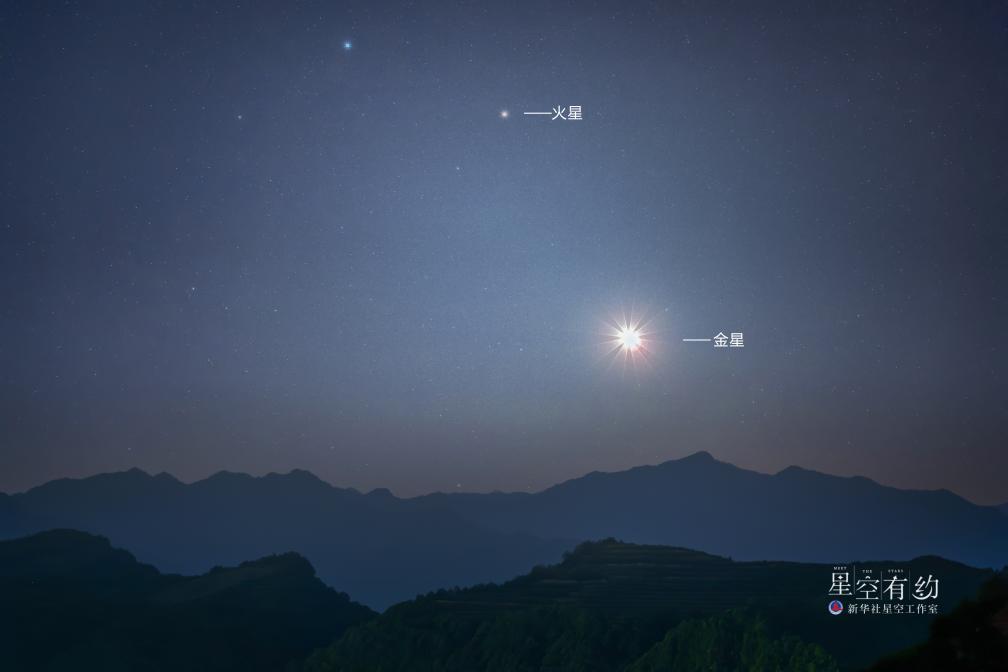 甘肃省星空摄影爱好者鲁罡2023年7月6日在甘肃省陇南市两当县拍摄的金星和火星。(本人供图)