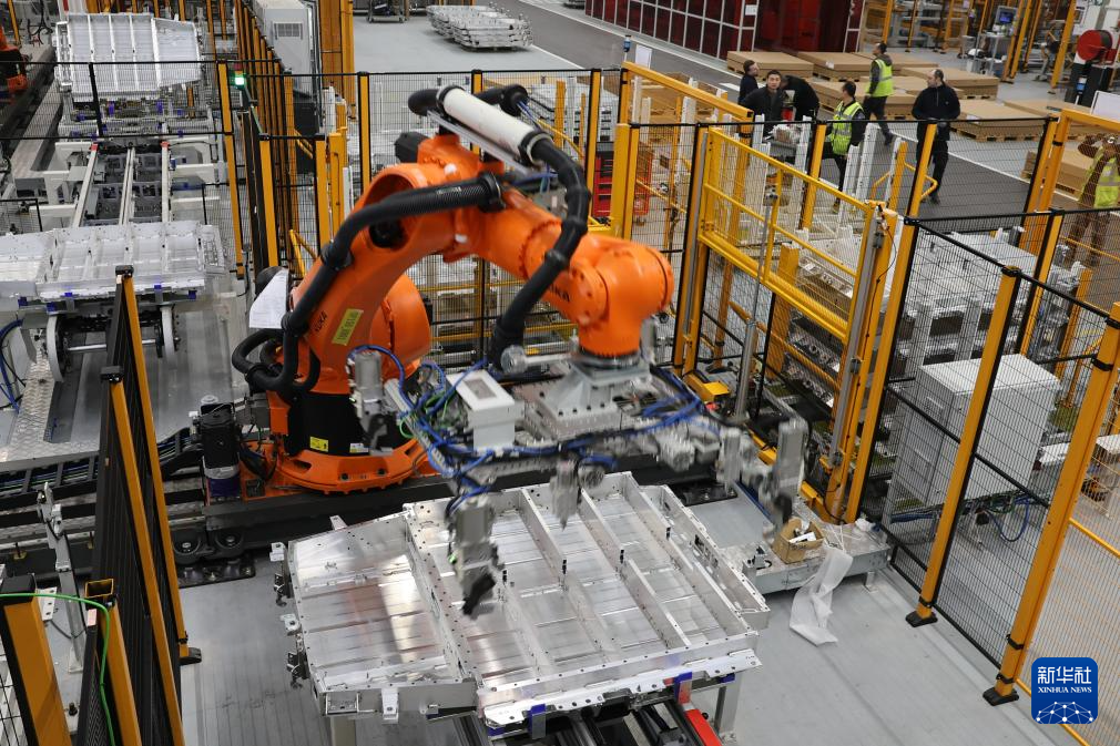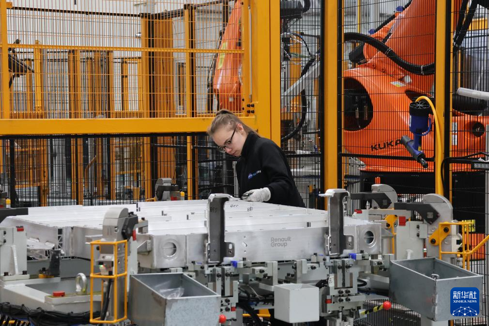 这是2月23日拍摄的中国敏实集团与法国雷诺集团成立的合资公司在法国吕茨工业区投资设立的电池盒生产线。新华社记者 张百慧 摄