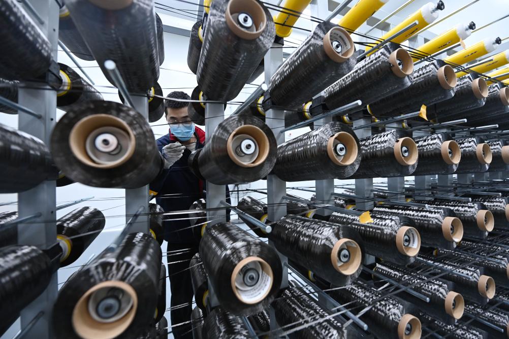 在天津爱思达航天科技股份有限公司,工作人员正在查看碳纤维复合材料。新华社记者 赵子硕 摄