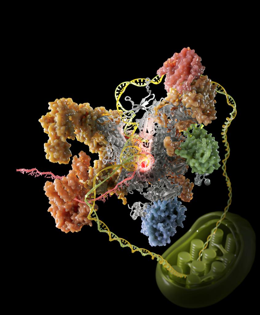 研究表明,叶绿体PEP一共有20个“装配部件”(蛋白亚基),组成了5个功能模块(催化模块、支架模块、保护模块、RNA模块和调控模块)。催化模块由叶绿体基因组编码,其蛋白亚基起源于蓝细菌。其他模块由细胞核基因组编码,其大部分蛋白亚基起源于真核细胞,在细胞质翻译后运输至叶绿体完成组装。