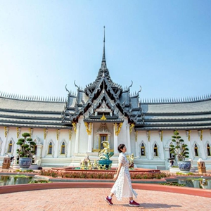 3月1日,中国游客在泰国北榄府暹罗古城游览。新华社记者王腾 摄