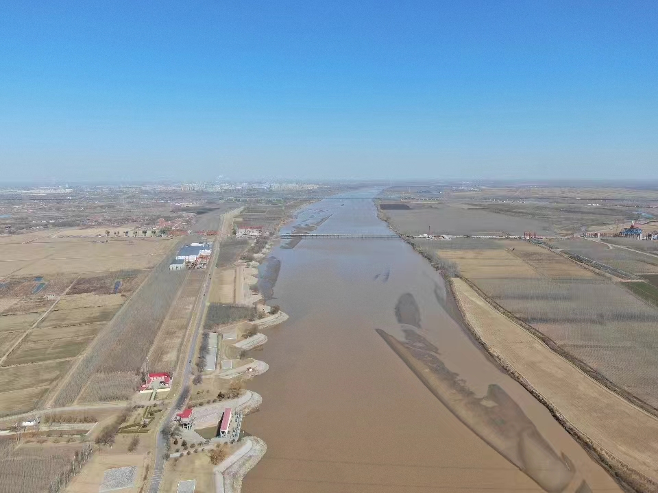 2024年3月1日,黄河东营利津段河道的航拍画面。崔慧聪 摄