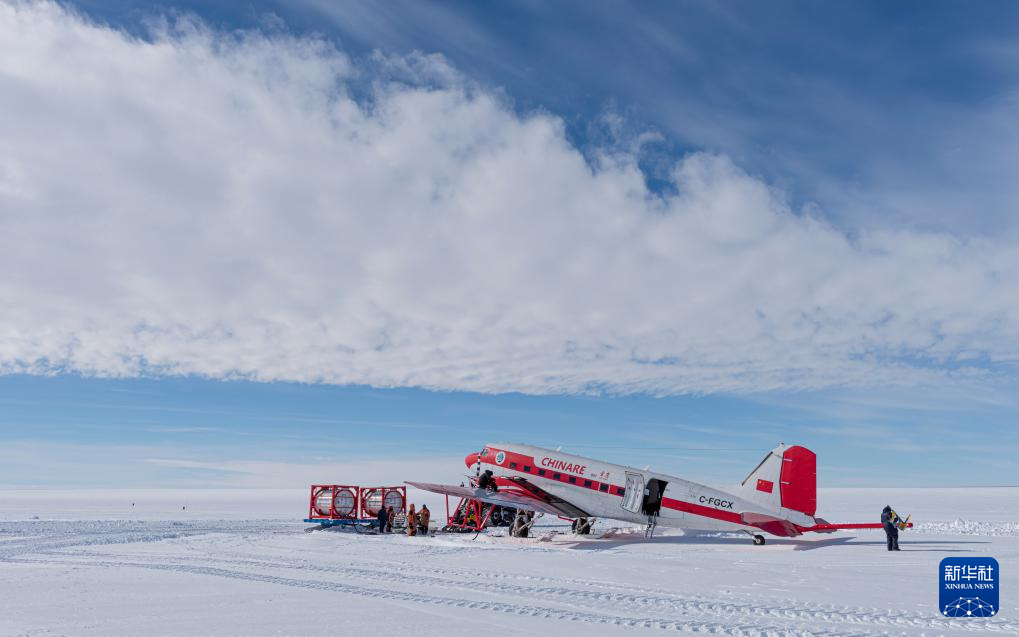 1月3日,“雪鹰601”降落在南极中山冰雪机场。新华社发(裴文悦摄)
