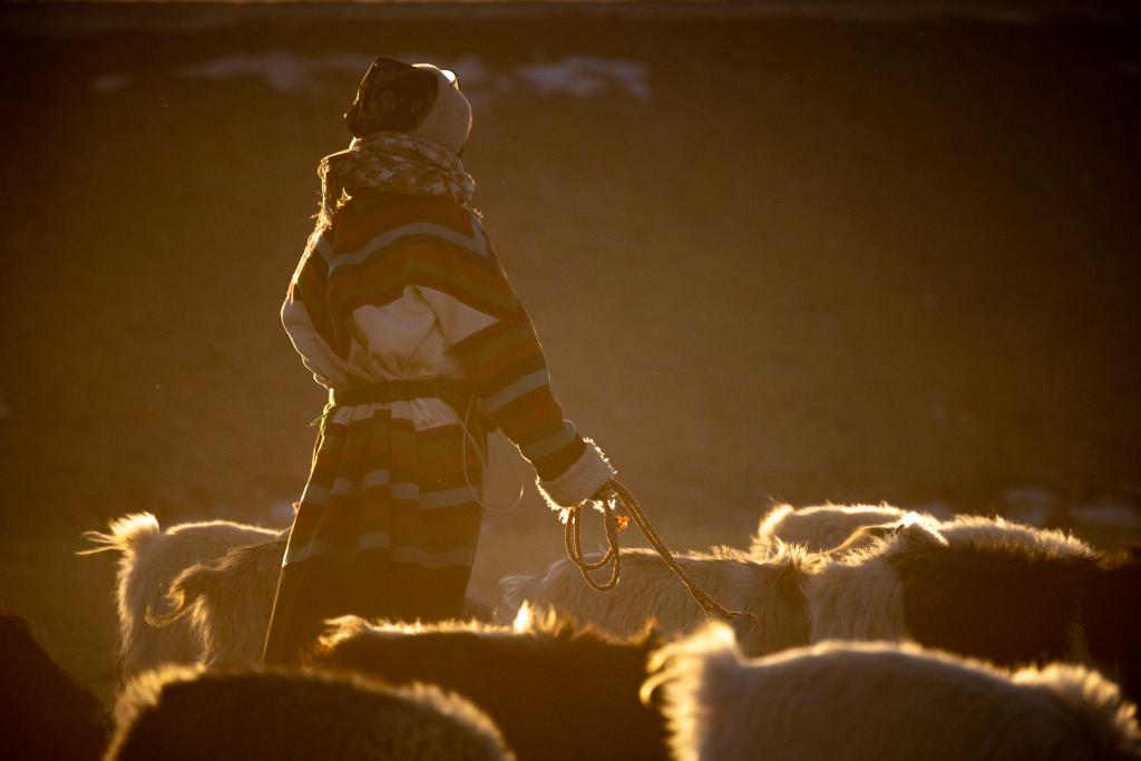 2023年末,记者在马迁村遇到独自放羊的丹增。那天,尼玛全县出现了大风天气,局地风力达到12级,傍晚的气温就达到零下十几摄氏度。尽管丹增穿着最厚的氆氇,只有眼睛露在外面,一整天的户外劳作还是让她浑身冰冷酸痛。“手指尖全都冻僵了,疼得不得了。”她说。