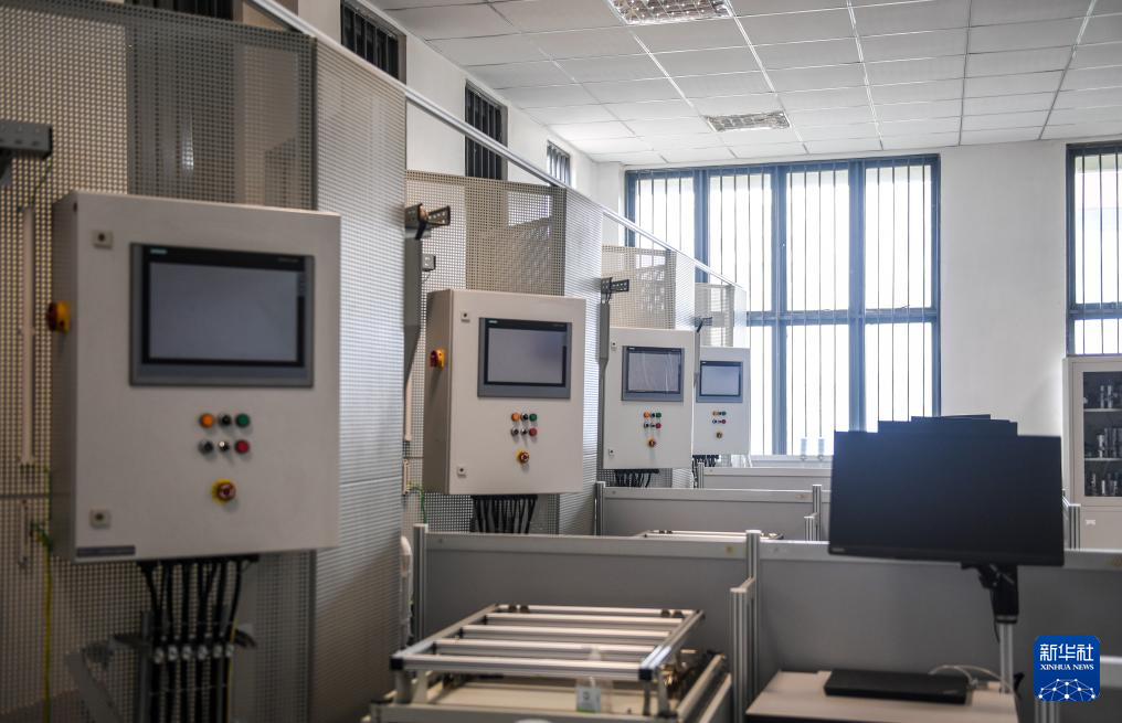 这是2月15日在亚的斯亚贝巴的埃塞俄比亚联邦职业技术培训学院鲁班工坊内拍摄的机电一体化设备。