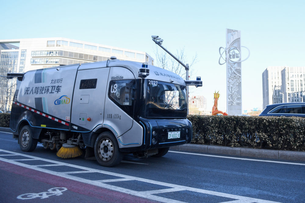 2024年3月1日,在北京经济技术开发区,一辆自动驾驶环卫车在作业。新华社记者 鞠焕宗 摄