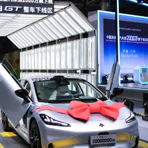 2023年7月3日,在广东省广州市的广汽埃安第一智造中心,中国新能源汽车第2000万辆下线活动现场。新华社记者邓华 摄
