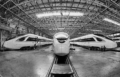 图为中车唐山机车车辆有限公司的工人在复兴号动车组生产线上工作。新华社记者 杨世尧 摄