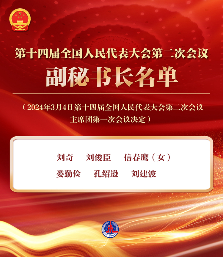 两会受权发布丨第十四届全国人民代表大会第二次会议副秘书长名单_2024全国两会大型融媒体专题_新华网