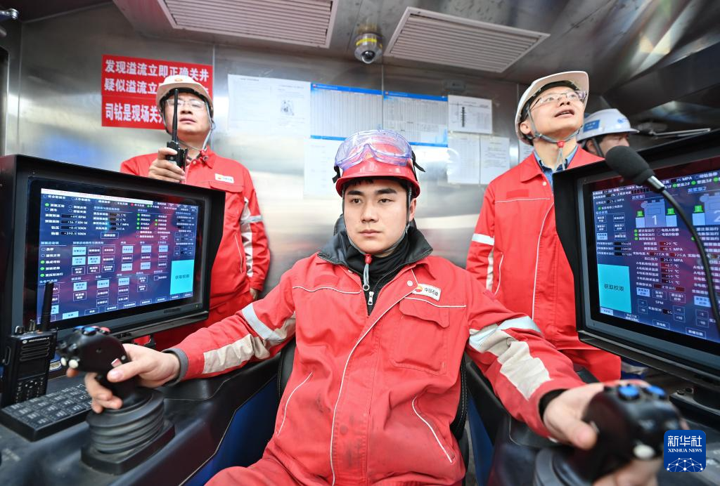 3月3日,司钻在深地塔科1井驾驶钻机作业。新华社记者 李响 摄
