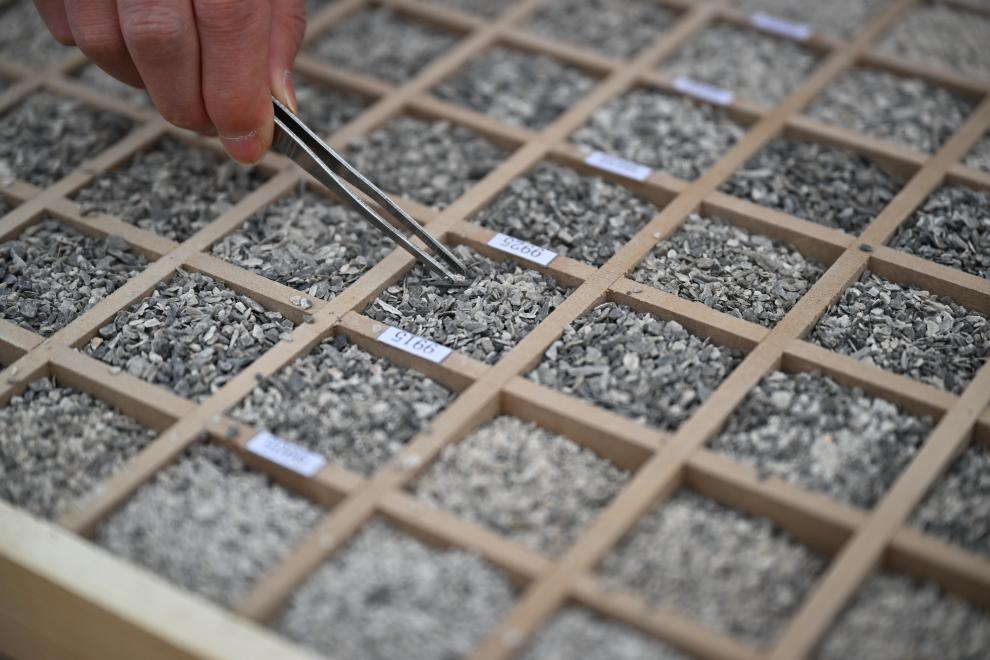 3月3日,科研人员在深地塔科1井研究从地底深处取上来的岩屑。新华社记者李响 摄