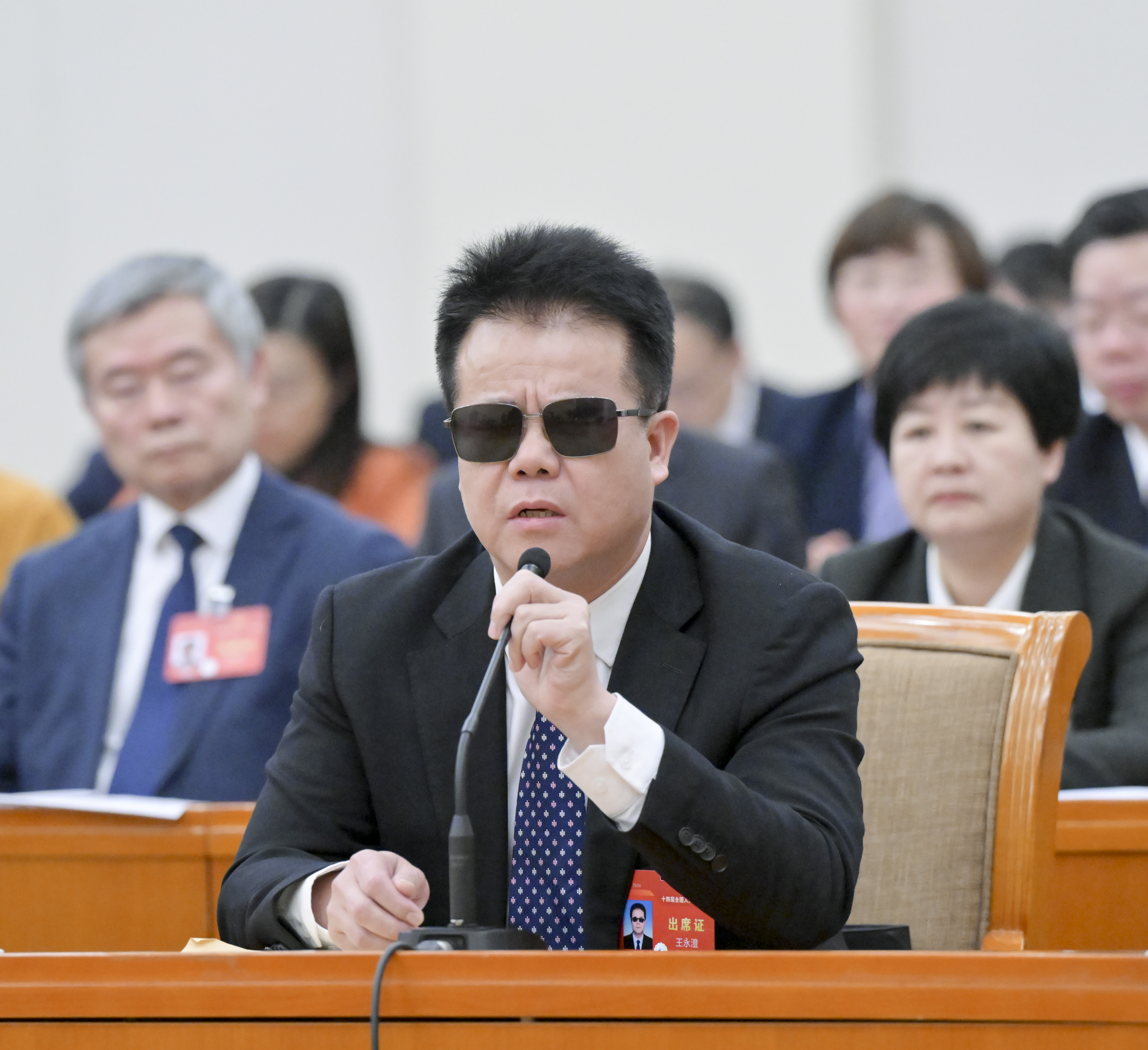 “去年,我第一次参加全国人大会议,我的爱人作为向导全程陪同,驻地房间里配有盲文电脑,会场设置了无障碍通道;今年,大会又为我提供了盲文版文件。作为盲人代表,我深受鼓舞,要继续为残疾人事业鼓与呼。”王永澄说。
