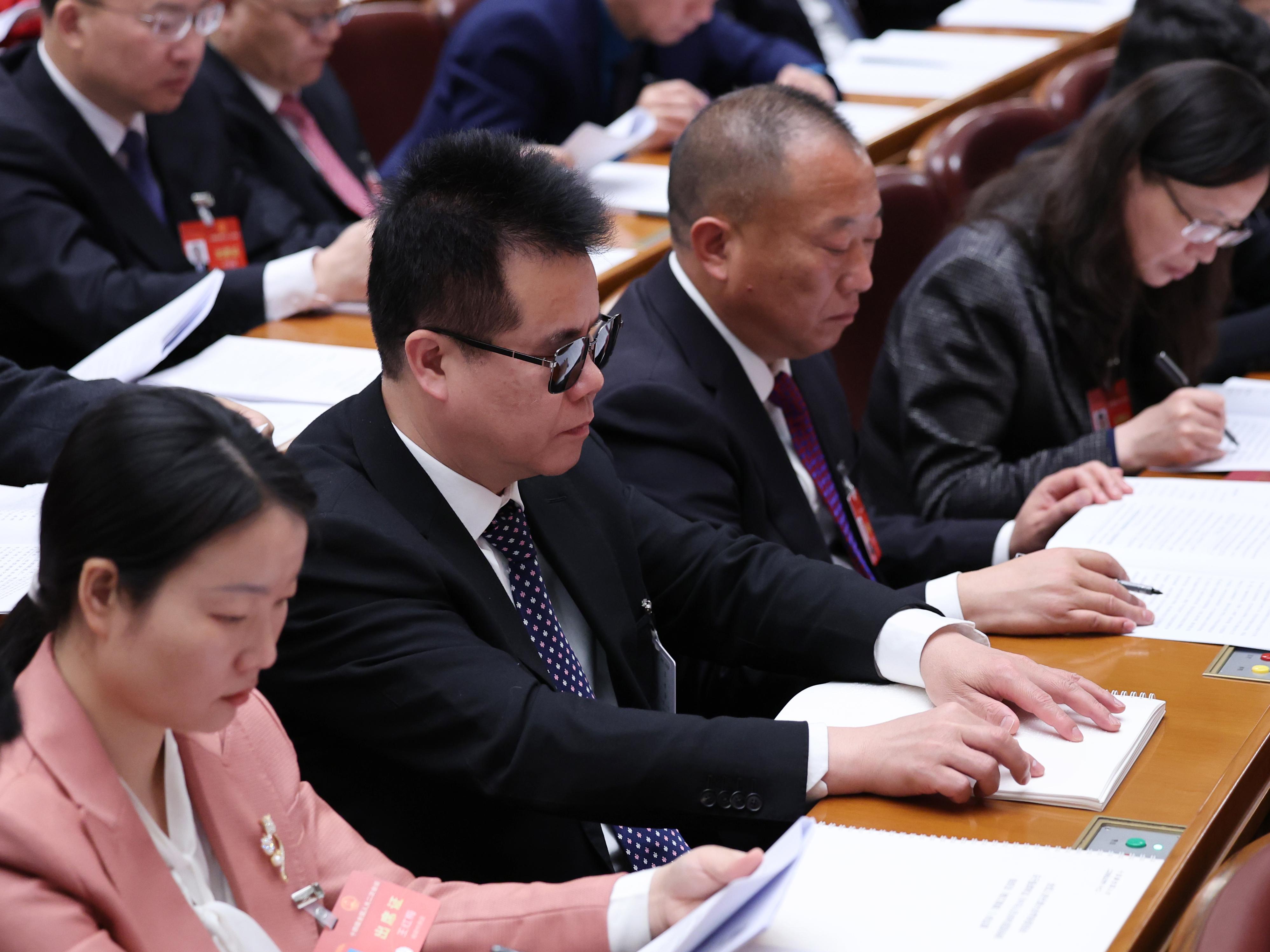 这是盲文版政府工作报告首次亮相全国人大会议。