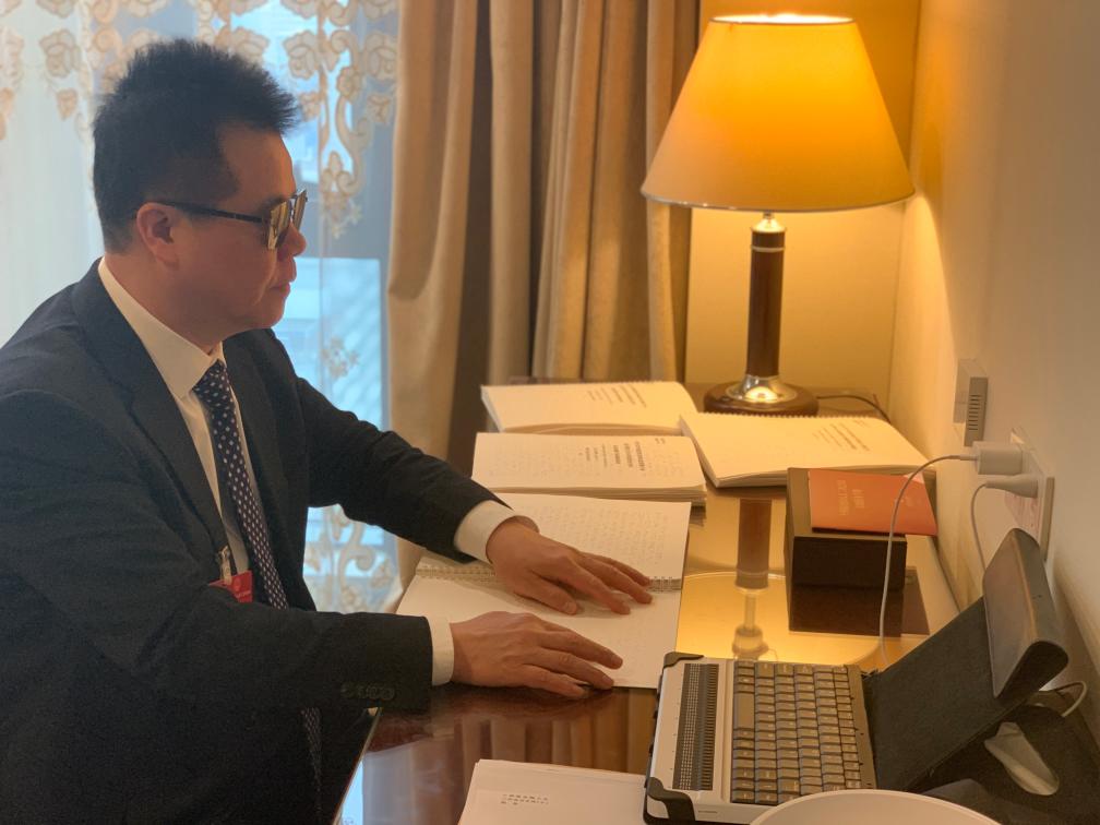 3月5日中午,王永澄代表在驻地房间内用手指触摸阅读盲文版政府工作报告。新华社记者史竞男 摄