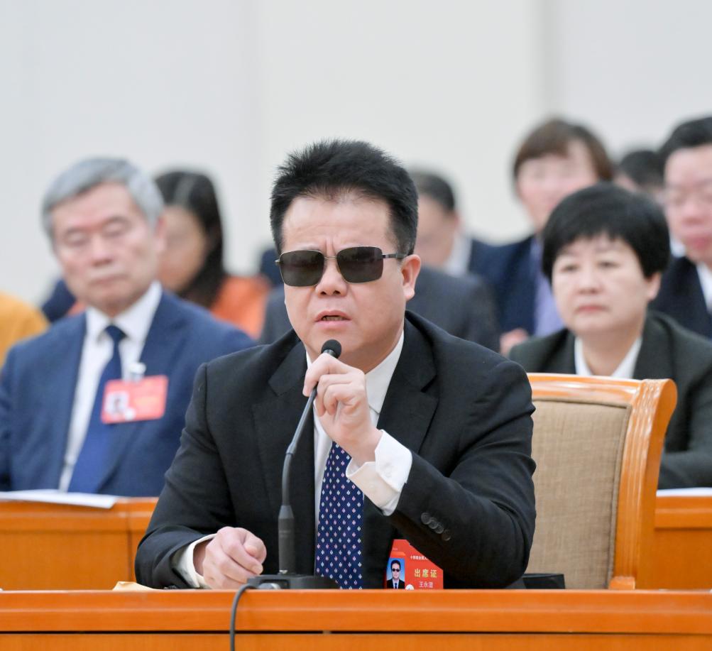 “去年,我第一次参加全国人大会议,我的爱人作为向导全程陪同,驻地房间里配有盲文电脑,会场设置了无障碍通道;今年,大会又为我提供了盲文版文件。作为盲人代表,我深受鼓舞,要继续为残疾人事业鼓与呼。”王永澄说。