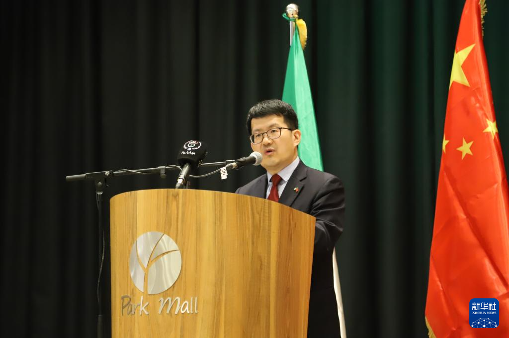 3月5日,在阿尔及利亚塞提夫,中国驻阿尔及利亚大使李健在论坛现场致辞。新华社记者 吴天雨 摄