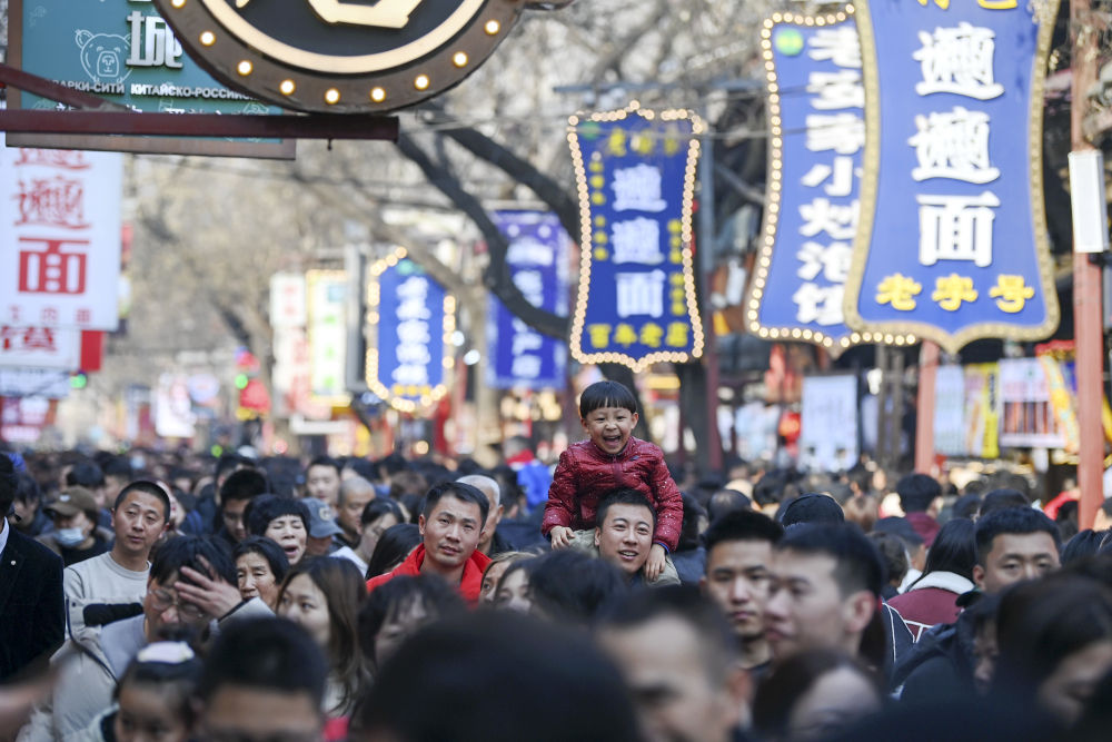 2024年2月13日,游客在西安市美食文化街区回民街游览。新华社记者 李一博 摄