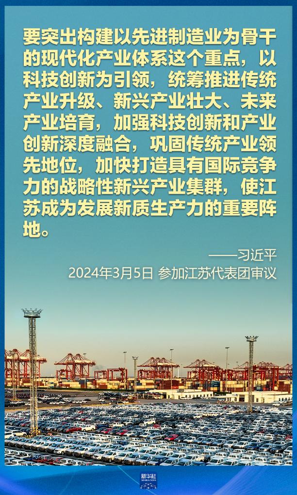 5日下午,习近平在参加他所在的十四届全国人大二次会议江苏代表团审议时强调,因地制宜发展新质生产力。