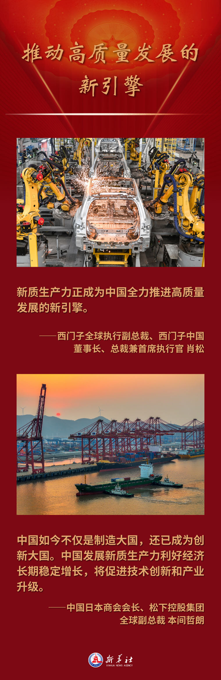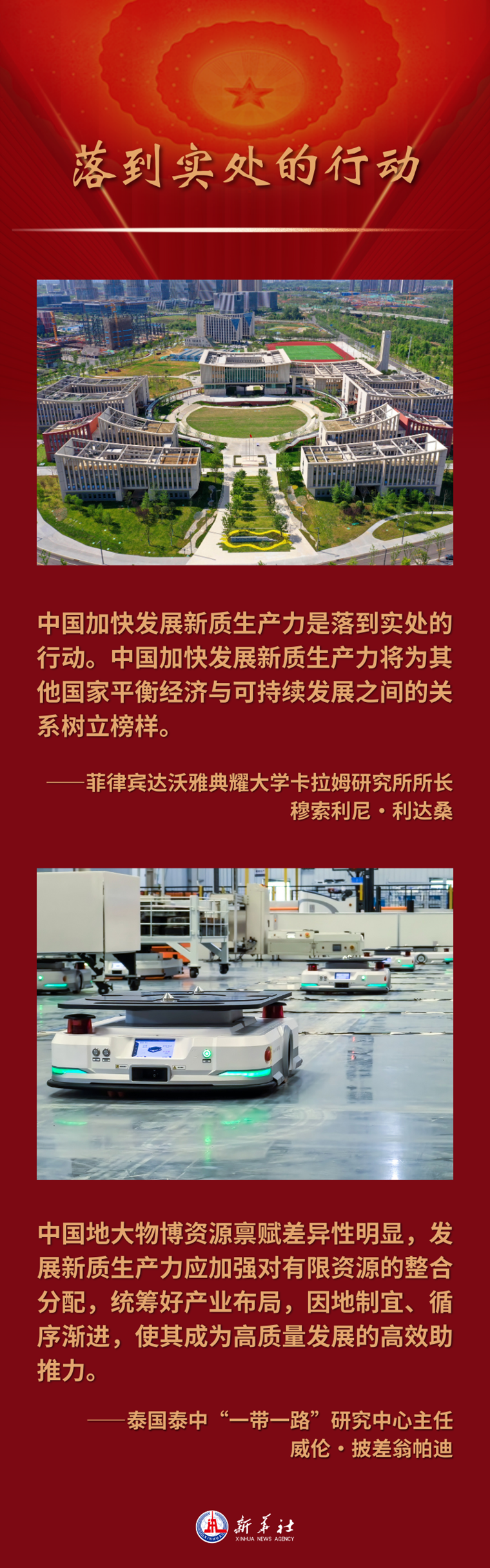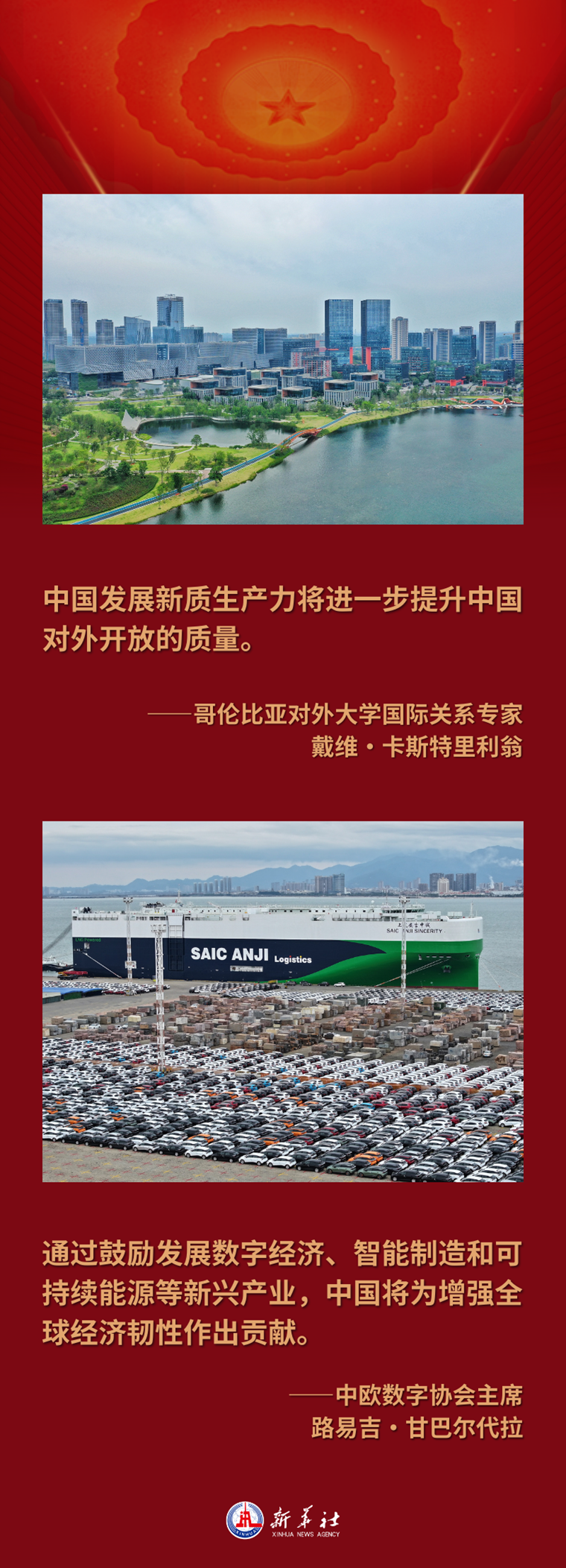 海外人士对习近平总书记关于发展新质生产力的重要论述给予高度评价,认为习近平总书记的论述为继续巩固和增强经济回升向好的态势注入动力,为中国经济高质量发展、推进中国式现代化建设提供科学指引,相信中国发展新质生产力将不断取得成果,向“新”而行的中国经济也将为全球经济发展增加新活力、带来新机遇,助推建设和平发展、共同繁荣的美好世界。