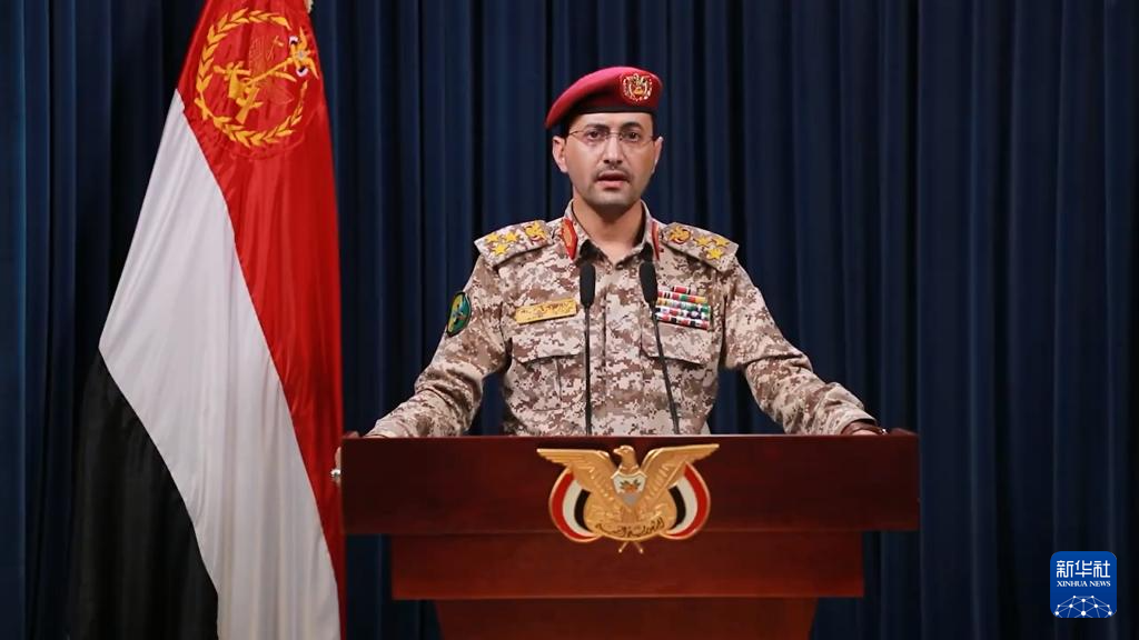 这张3月6日的视频截图显示,也门胡塞武装发言人叶海亚·萨雷亚在萨那发表声明。新华社发
