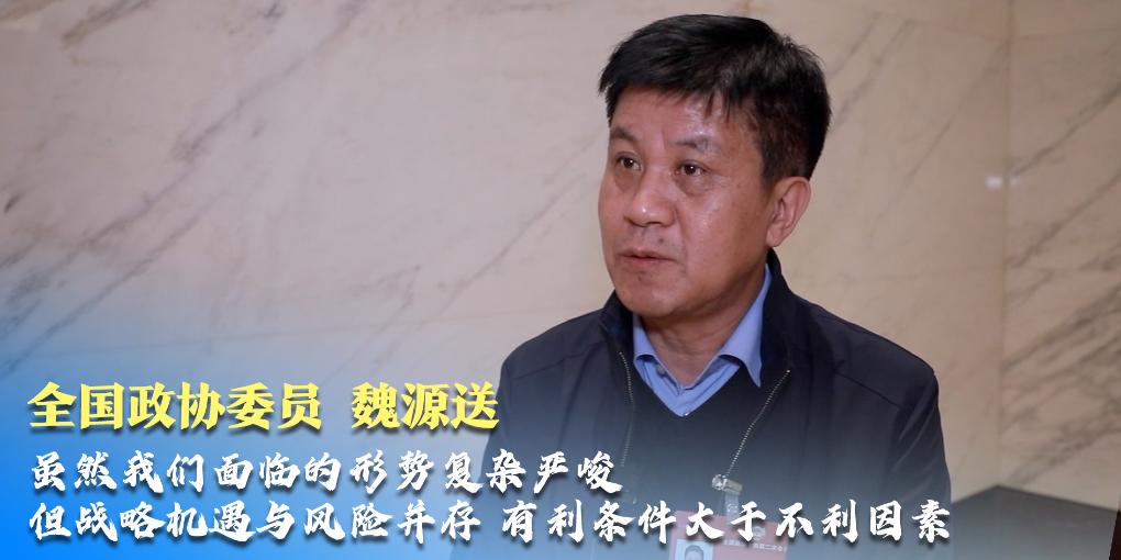 全国政协委员魏源送表示,虽然我们面临的形势复杂严峻,但是总体上来讲,战略机遇与风险并存,有利条件大于不利因素。