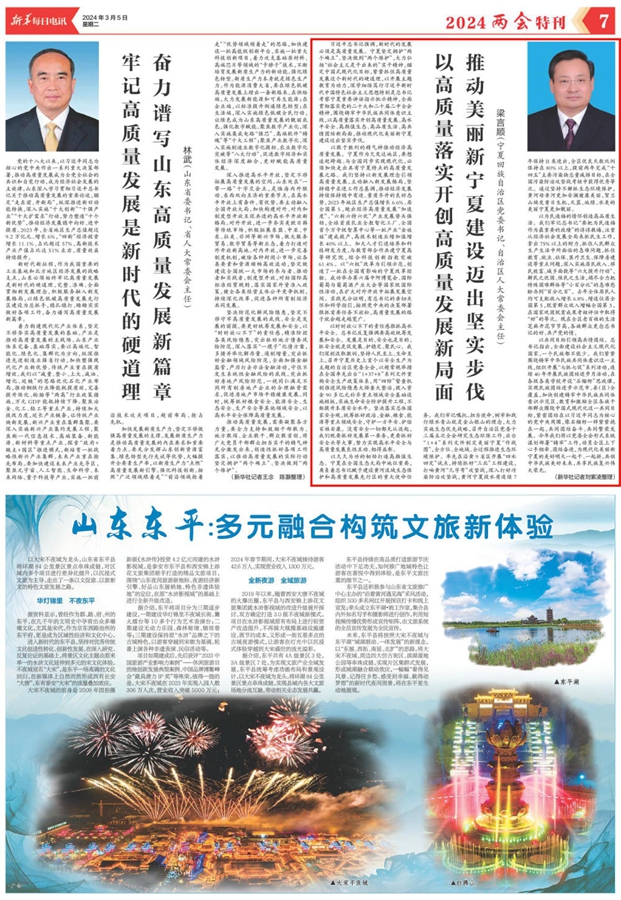 以敢于胜利的精气神推动经济高质量发展。宁夏作为欠发达地区,要想追赶跨越、与全国同步实现现代化,必须加快走出具有宁夏特点的高质量发展之路。我们坚持以新发展理念引领高质量发展,主动融入新发展格局,坚持稳中求进工作总基调,推动经济发展持续保持稳中有进、量质齐升的良好态势,2023年地区生产总值增长6.6%、居全国第5,跑出经济高质量发展“加速度”。“六新六特六优”产业发展势头强劲,全球首座乳业全数智化工厂、全国首个万卡级智算中心等一批产业“金娃娃”建成投产,高技术制造业增加值增长40%以上。加大人才引进培养和科技研发力度,与教育部合作共建宁夏高等研究院,综合科技创新指数突破61.4%。以“六权”改革为引领示范,创造了一批在全国有影响的宁夏改革经验。成功举办第六届中阿博览会、国际葡萄与葡萄酒产业大会等国家级国际性活动,在扩大对外开放中拓展发展空间。实践充分证明,有总书记的亲切关怀和科学指引,按照党中央的决策部署狠抓首要任务不放松,高质量发展的路子就会越走越宽广。