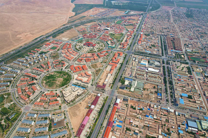 宁夏闽宁镇,昔日“干沙滩”变成如今的“金沙滩”,成为东西部协作的光辉典范,获得“全国民族团结进步模范集体”等称号。图为2023年9月20日拍摄的闽宁镇。(自治区党委宣传部供图)