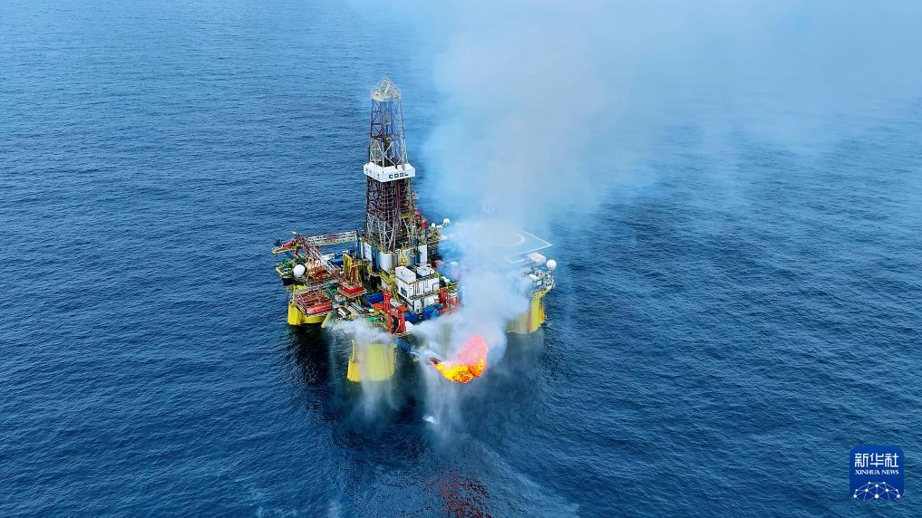 “南海八号”钻井平台在开平南油田探井进行产量测试(2023年7月10日摄)。新华社发pagebreakpagebreak