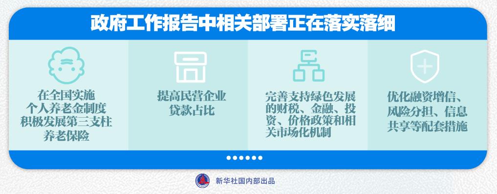 仔细翻阅政府工作报告,含“金”满满,相关部署正在落实落细:在全国实施个人养老金制度,积极发展第三支柱养老保险;提高民营企业贷款占比;完善支持绿色发展的财税、金融、投资、价格政策和相关市场化机制……