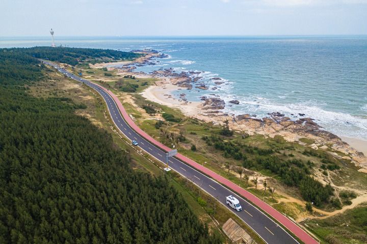 2023年12月26日,海南环岛旅游公路文昌木兰湾段景色(无人机照片)。新华社记者蒲晓旭 摄