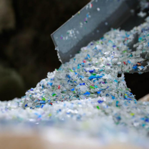 这是在韩国江原道横城郡的一个塑料垃圾处理厂内拍摄的经过初步磨碎的废弃PET塑料碎片(2021年5月27日摄)。新华社记者 王婧嫱 摄