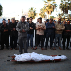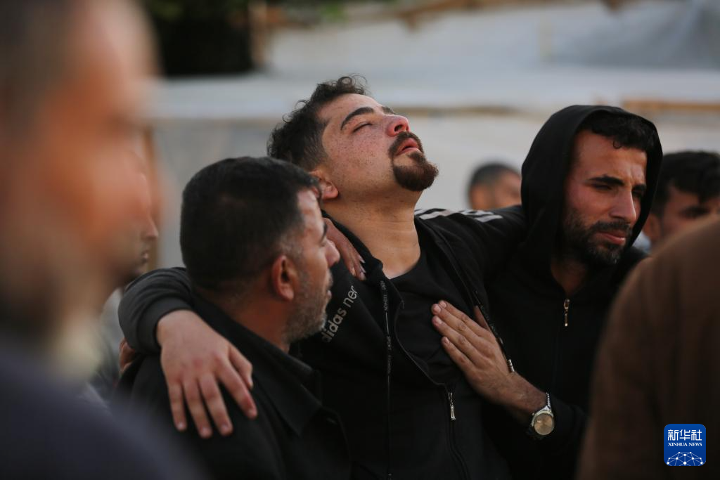 3月9日,在加沙地带中部的阿克萨医院,人们送别遇难者。新华社发