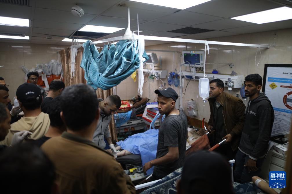3月9日,在加沙地带中部的阿克萨医院,一名伤者接受治疗。新华社发