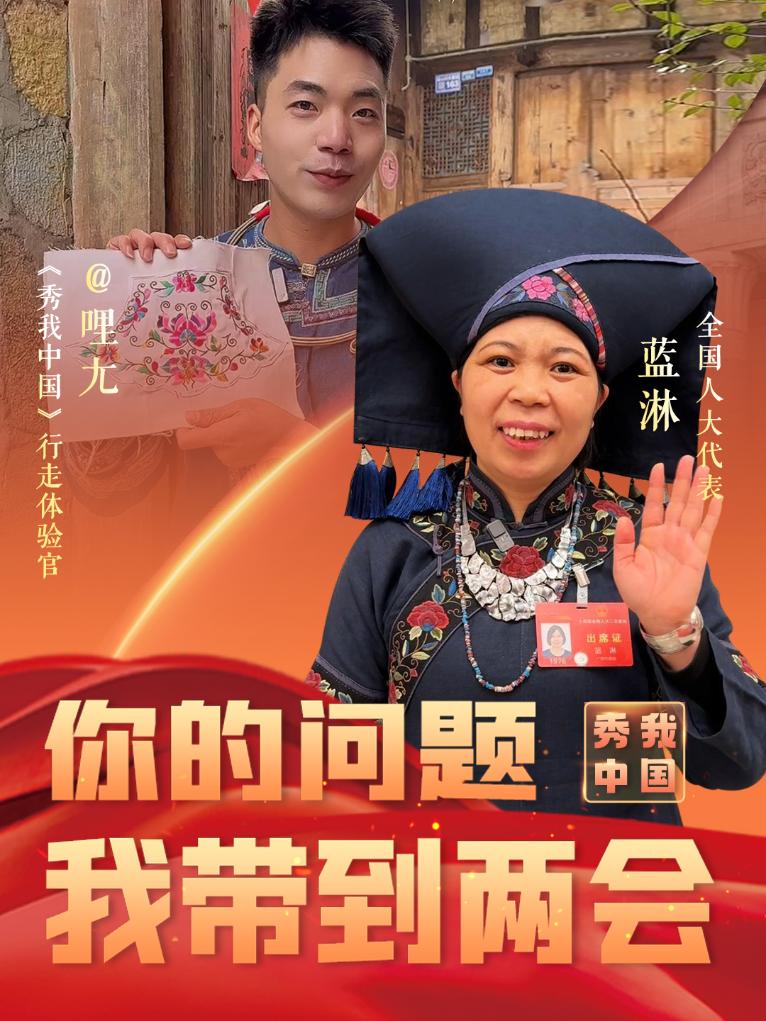 布依族服饰非遗传承人@哩尢 向全国人大代表、壮族刺绣非物质文化遗产代表性传承人蓝淋提问:如何传承和发展非遗技艺?