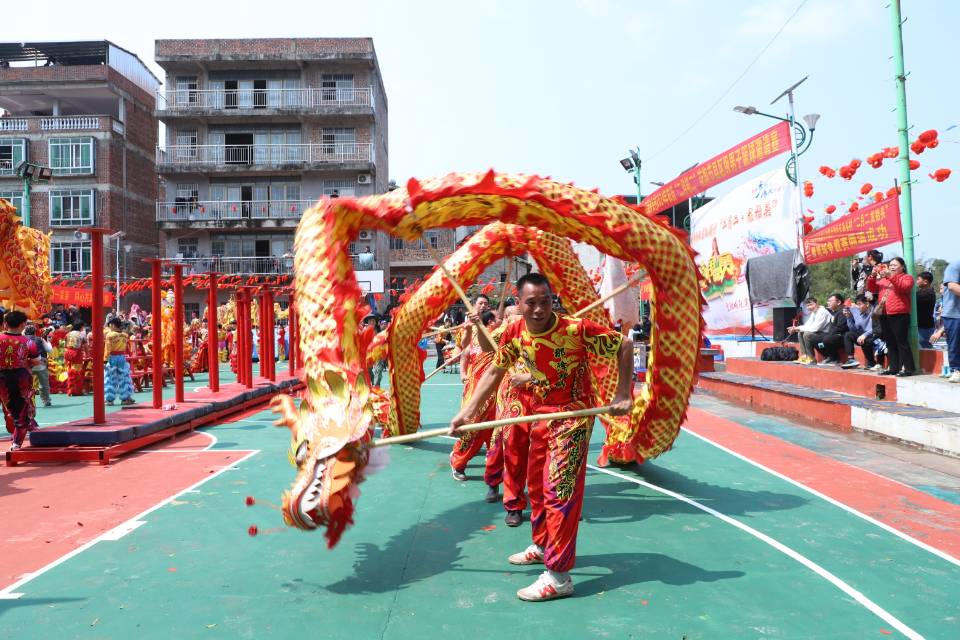 一大早,孙头坡张灯结彩、彩旗招展,处处洋溢着喜庆气氛。好客的村民备上好酒好菜,呼朋唤友前来参加“抢花炮”。上午9时,去年的“炮头”怀抱着“福牌”,在舞龙醒狮队、八音锣鼓队、民俗方块队等团队的助兴下,前往当地老庙开展祈福活动。临近中午,大家回到孙头坡中心球场,进行舞龙舞狮、腰鼓等表演,吸引了众多游客前来。