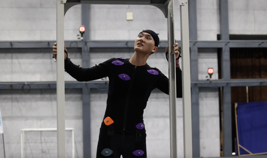 “这是动作数字孪生,利用光学动捕技术,棚内多个专业摄像头捕捉演员身上的特定标记,以毫秒级的速率计算出角色的运动轨迹,然后将数据传送到电脑上,实现虚拟人物的动作。”国家动漫园公共技术服务平台动捕棚的技术顾问崔盛辑向记者介绍道。
