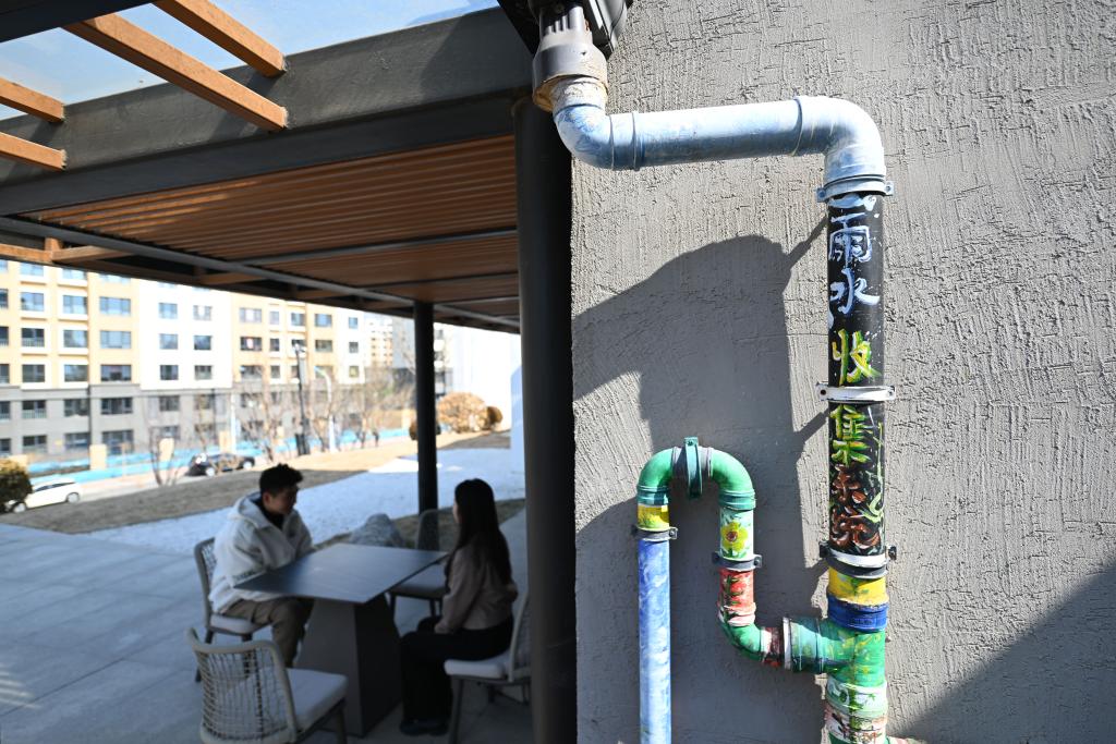 这是3月9日在“eden春山里”生态教育国际生活示范区建筑外拍摄的雨水收集装置。新华社记者 孙凡越 摄