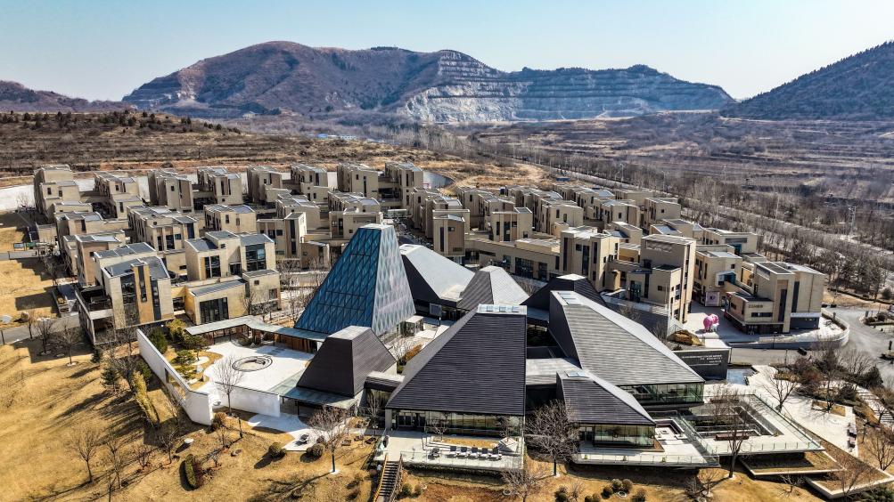 这是3月9日拍摄的位于天津市蓟州区的东后子峪矿区旧址,目前已经过修复并建成了“eden春山里”生态教育国际生活示范区(无人机照片)。新华社记者 孙凡越 摄