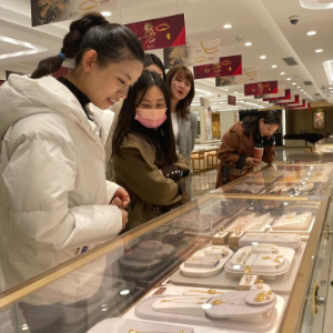 终端消费、投资热带动金店销量大幅提升。老凤祥豫园店经理蒋伟栋介绍,其所在门店前两个月的销售额同比增长了50%。“这背后的原因一方面有春节等假期元素的带动,需求增多,另一方面也有消费者投资增加的带动。”
