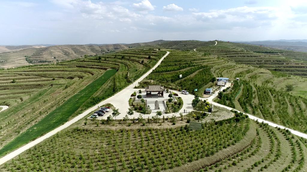 来自不同地方的小小的树苗生根发芽,于同一片土地之上成长,长成高低不同的树木,连在一起,为黄土地铺上一条碧绿的“毯子”。