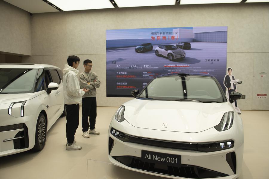 3月5日,市民在极氪合肥万象城门店了解新能源汽车。新华社记者 傅天 摄