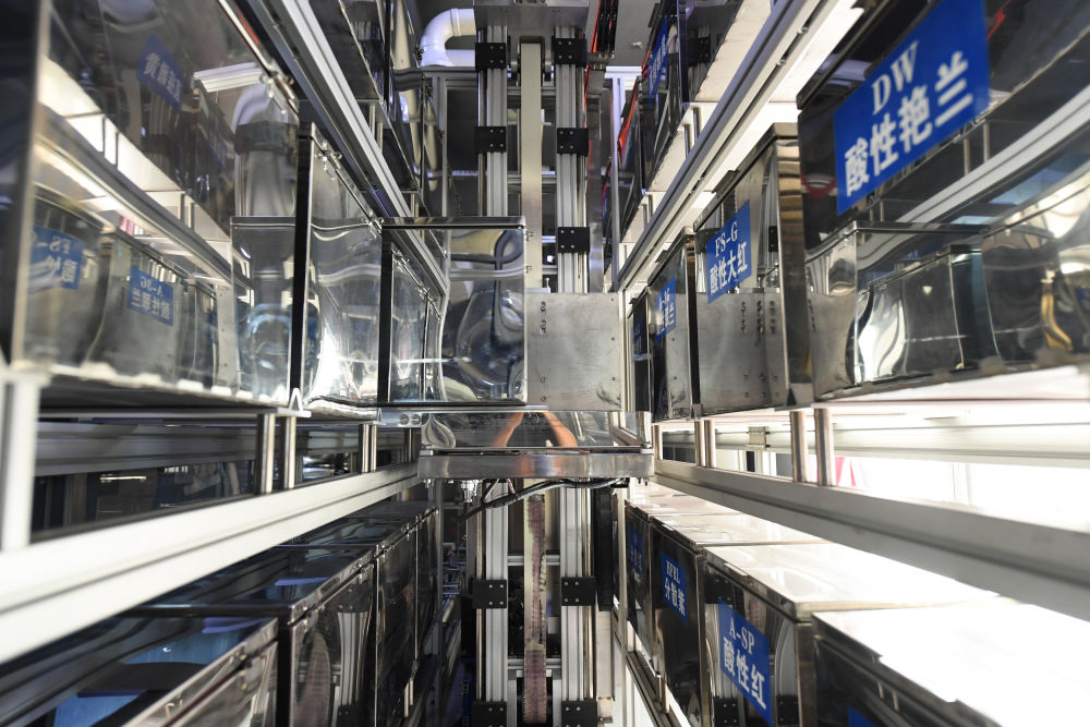 “智能化改造改变了人们对传统印染行业的印象。”迎丰科技副总经理徐叶根说,以往依靠人工配色,稍有不慎染料便会溢出造成污染。如今,工作人员只需在后台输入指令,系统就能精准调取染料,自动输送至对应染缸,减少染料浪费。