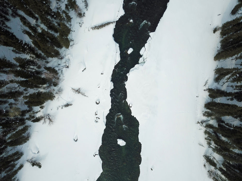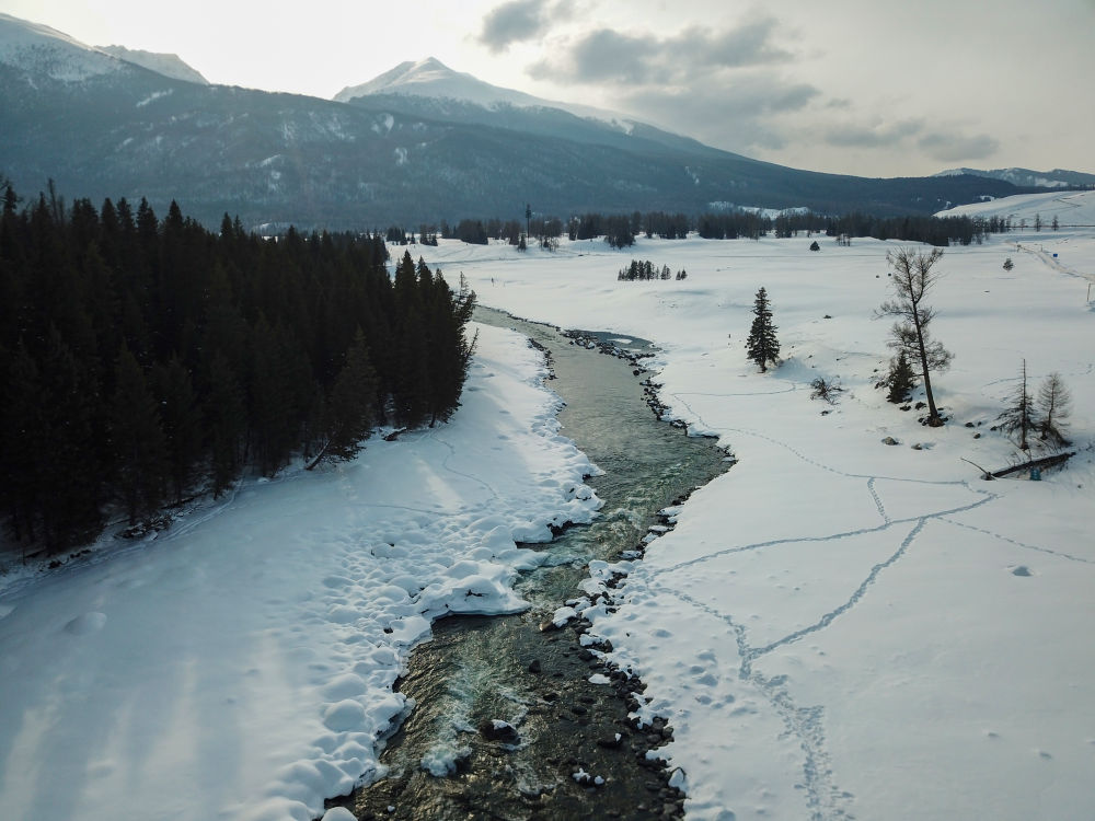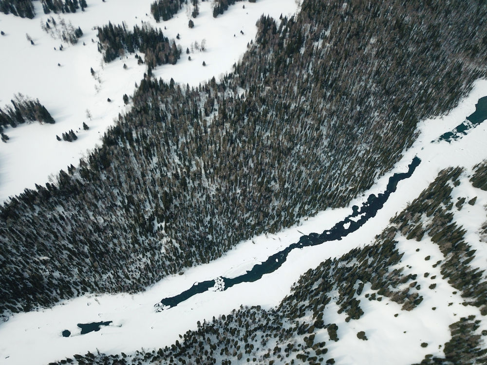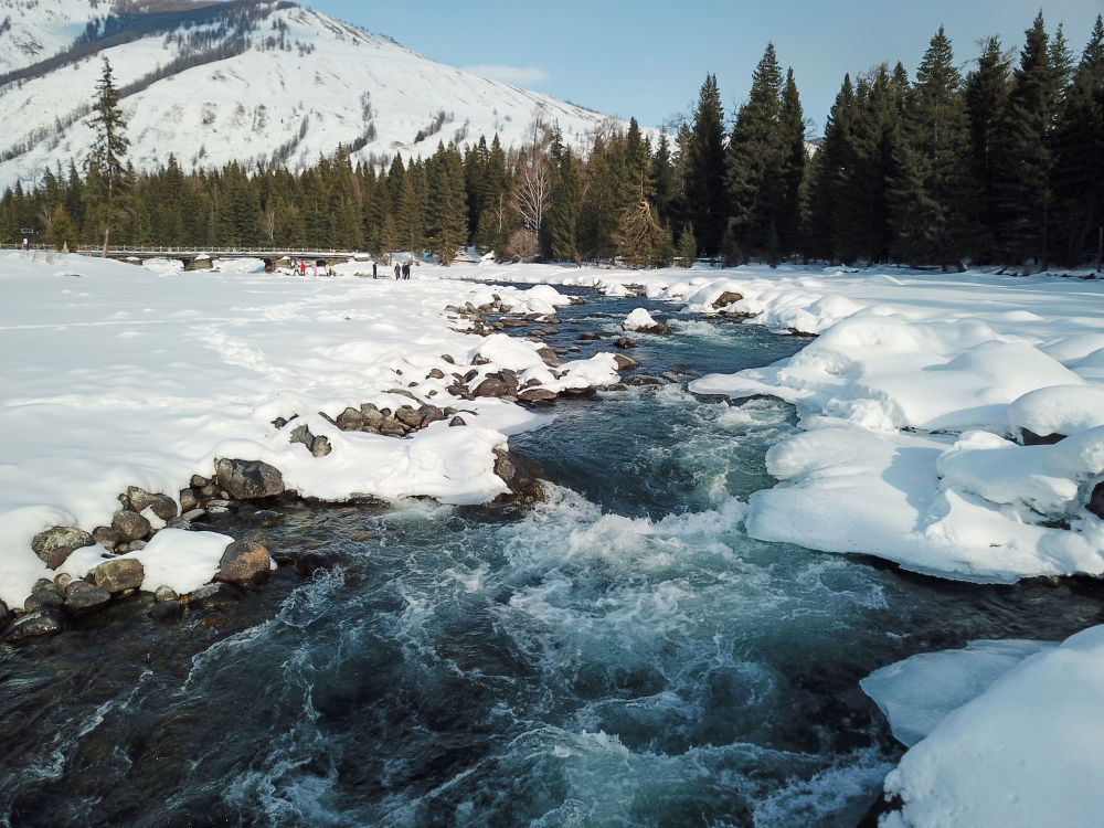 这是3月9日拍摄的喀纳斯河(无人机照片)。 新华社记者 张啸诚 摄