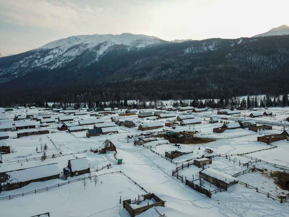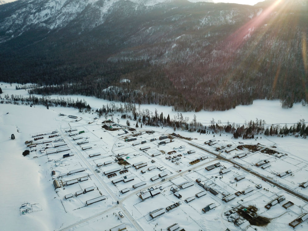 这是3月9日拍摄的喀纳斯图瓦新村(无人机照片)。 新华社记者 陈朔 摄