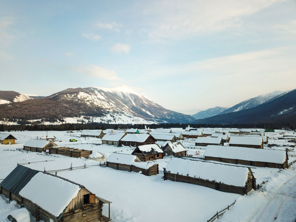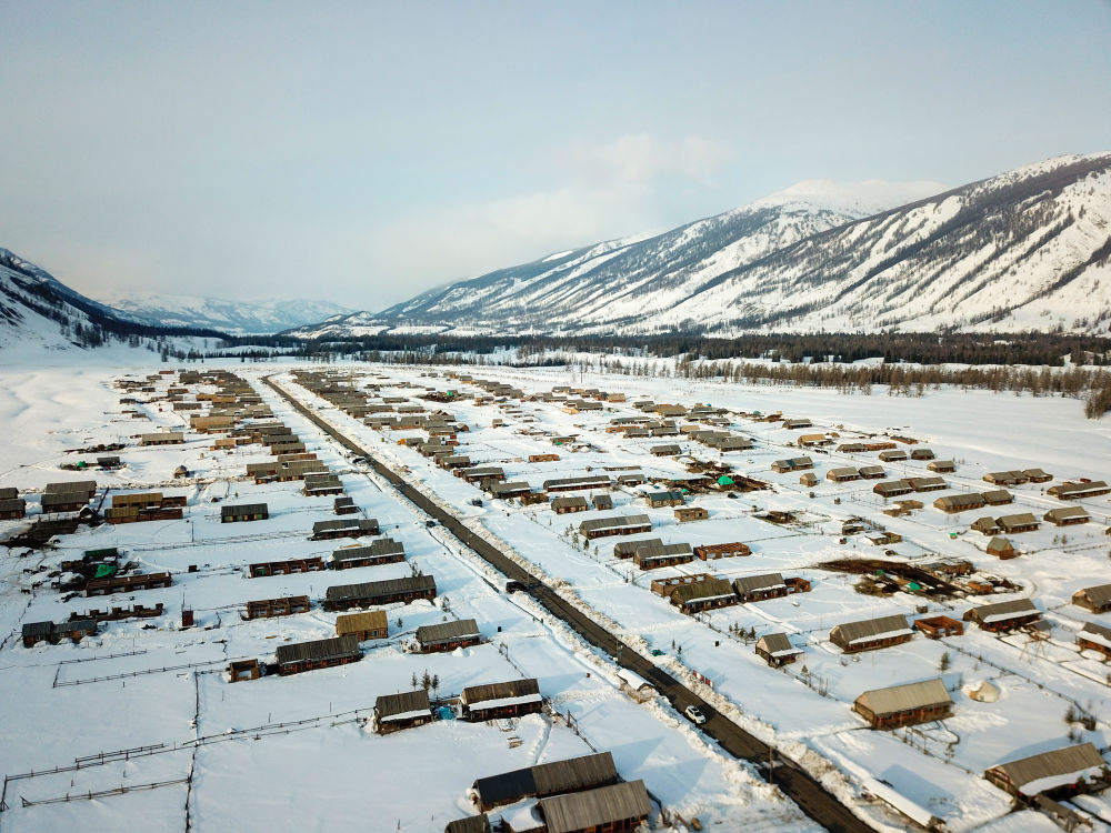 这是3月9日拍摄的喀纳斯图瓦新村(无人机照片)。 新华社记者 张啸诚 摄